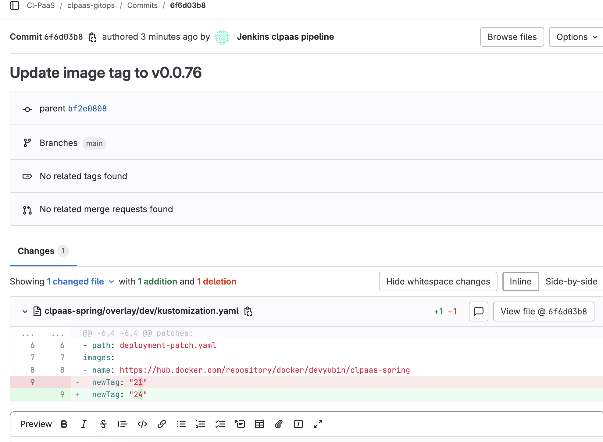 아래와 같이 태그값을 patch.yaml 에 반영해줌